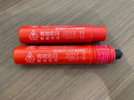 「発炎筒」とは、炎の灯りで周囲に危険を知らせるアイテムで、車への装備が義務づけられています。走行中に車の故障などで車を停止させる場合など、後続車に注意を促すために使用します。