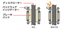 ※パッドウェアインジゲーターとは、ブレーキパッドが限界近くまで摩耗していることを運転者に知らせてくれる装置のこと。