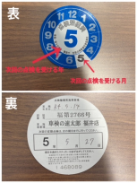 法定12ヶ月点検の時期は、お車のフロントガラスの左上に貼ってある「点検ステッカー」を見てみてください!
