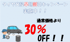 - こんにちは!「車検の速太郎」福井店中嶋です。 もうすこしで12月ですが、皆さんタイヤ交換はしましたか?? まだタイヤ交換してないよ~という方、必見です!! !!11/27(土)から12/12(日)の期間限定!! ご来店時にアプリダウンロードで、タイヤ交換半額キャン...