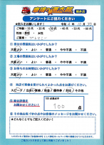 - 「車検の速太郎」福井店 お客様の声 ご紹介します♪ 10月16日ご評価いただきました!! 総合評価100点満点中 ?点頂戴しました!! 【当店からのメッセージ】 この度は、車検ご入庫ありがとうございました! スタッフの対応をお褒めいただき、大変嬉しく励...