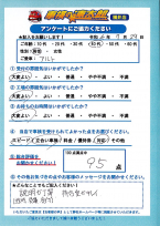 - 「車検の速太郎」福井店 お客様の声 ご紹介します♪ 7月29日ご評価いただきました!! 総合評価100点満点中 95点頂戴しました! 【当店からのメッセージ】 この度は、アルトの車検ご入庫ありがとうございました! スタッフの対応をお褒めいただき、大変嬉し...
