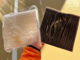 - 季節のお勧めメニュー 今回はエアコンフィルター交換です! 左が新品のエアコンフィルター、右が使用したエアコンフィルターになります。 エアコンフィルターは外から入ってくるホコリや花粉、ゴミなどをブロックする役割があります。交換を怠ると、雑菌が繁殖し悪...