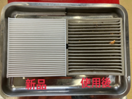 左が新品のエアコンフィルター、右が使用したエアコンフィルターになります。