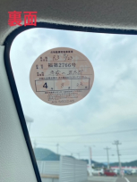 フロントガラスの左上に貼ってあるのが点検ステッカーになります。